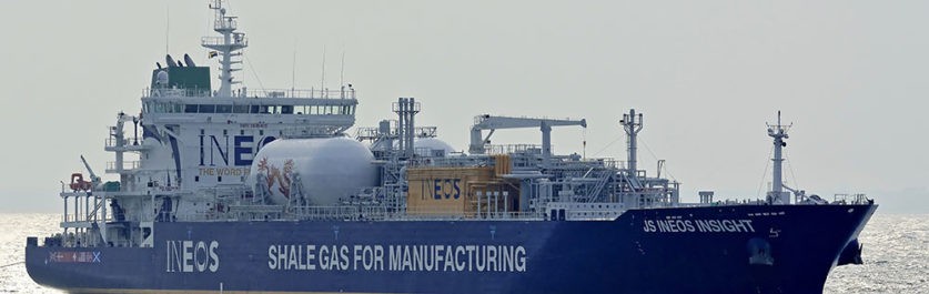 The tanker is set to deliver over 27,000 cubic metres of ethane gas extracted by fracking in Pennsylvania to the Grangemouth oil refinery on the Firth of Forth. The plant is run by multinational chemicals company Ineos, who are receiving this shipment of gas as part of a $2 billion investment program. Almost half a billion dollars has been spent so far by Ineos revamping their sites, including building a specially designed terminal that will receive the tanker and its load, converting the ethane gas into ethylene which will then be used in plastics manufacturing. Some of the gas received will be sent to another of Ineos’ sites in Hull.